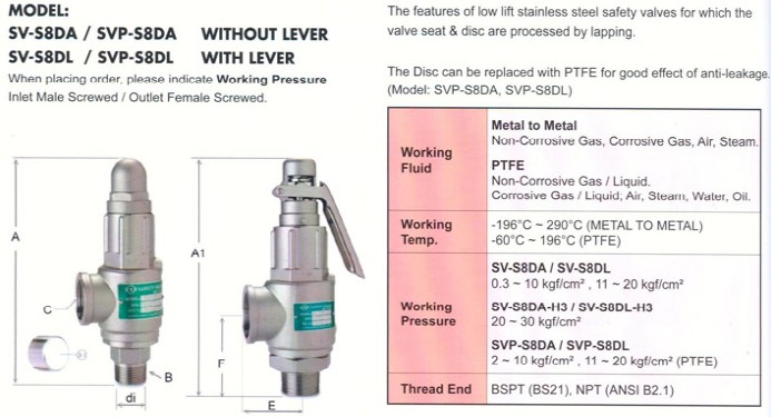 产品名称: SV-S8DA不锈钢安全阀